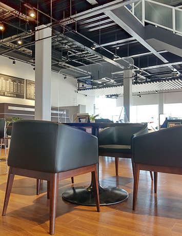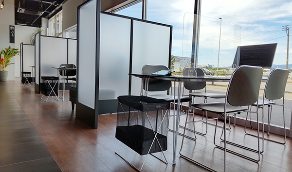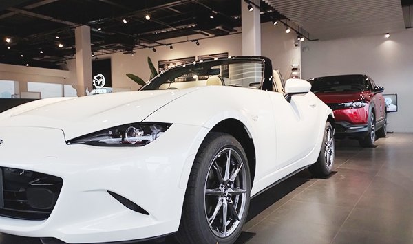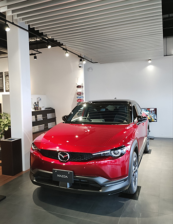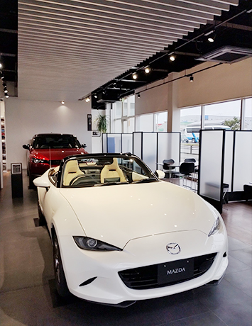 高い天井と相まって広々としたカフェの様な空間で、待ち時間を快適にお過ごしください。 ご商談コーナーもゆっくりとしたスペースでご提案いたします。 マツダのヘリテージを感じる空間も設置致しました。